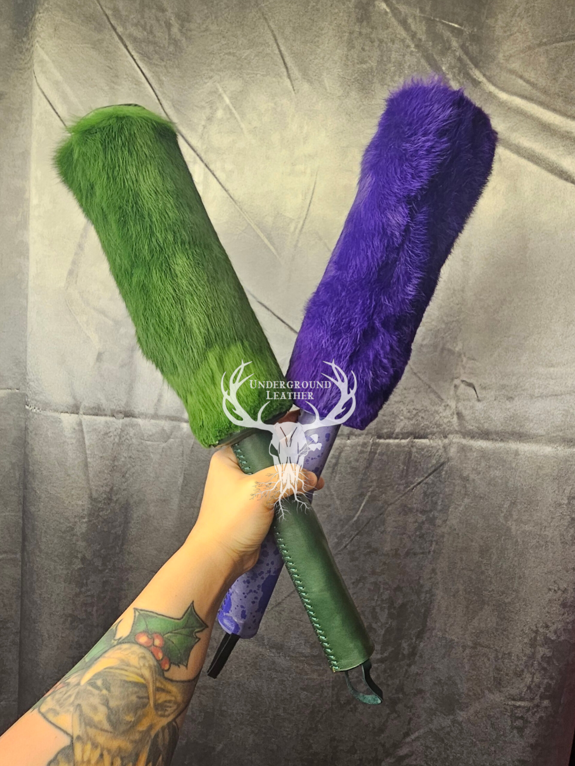 • Bunny beaters are the latest toy to come out of the studio, and it came out swinging! A 1.5 pound bat, created with wrapped bull hide and a rabbit fur sheath. This toy provides deep, thuddy impact and soft sensational play in one toy.